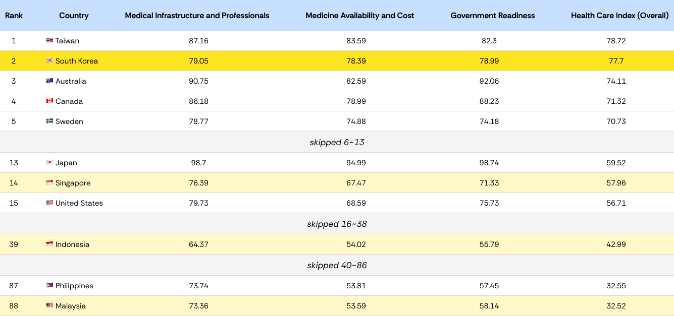 Korea has been ranked as the country with the second best healthcare system in the world.